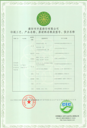 热烈祝贺濮阳市升晨彩印有限公司获得中国环境标志产品认证证书